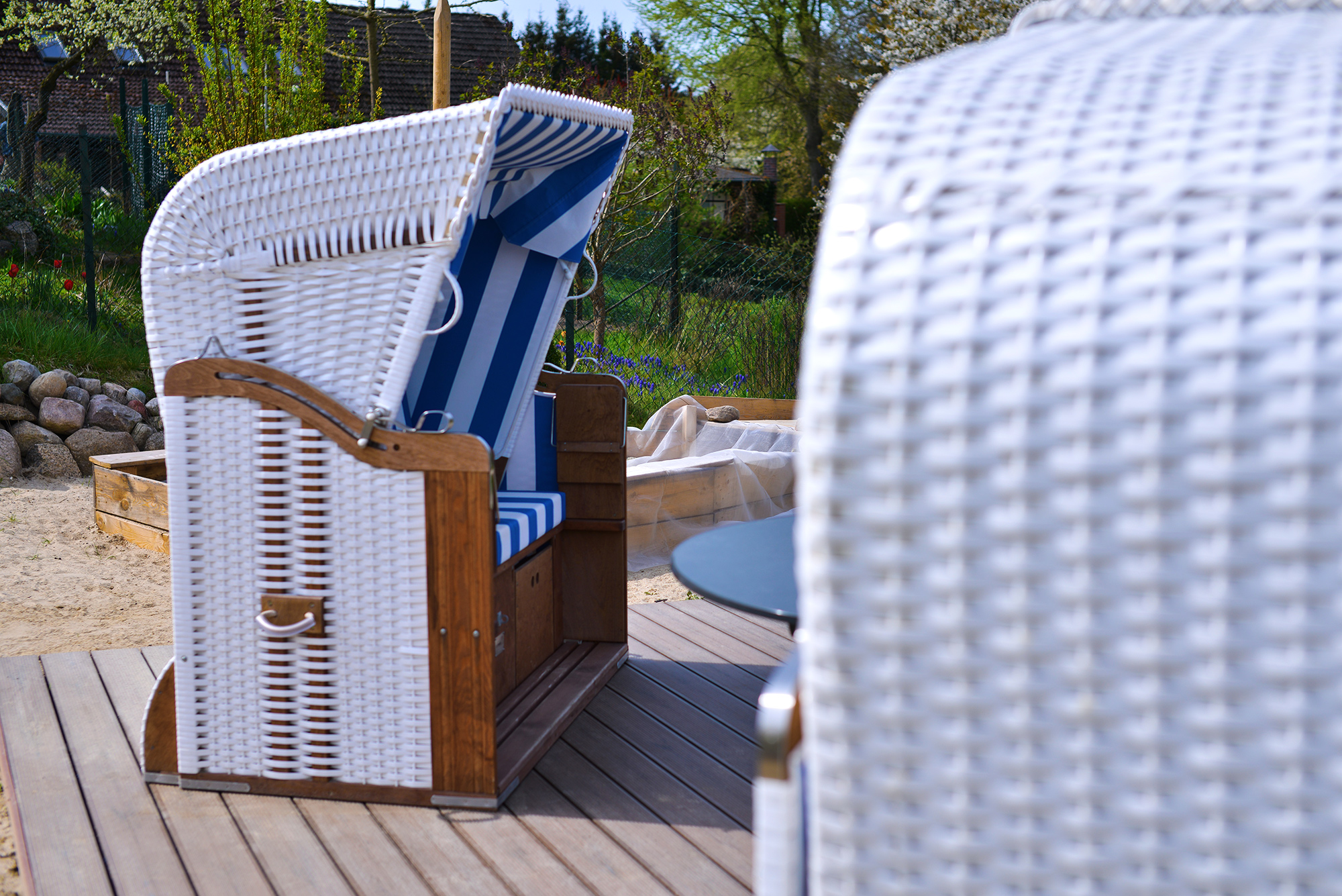 - Grillplatz, Relax-Lounge mit 2 Strandkörben, Liegestühlen, Sitzecke, Terasse… und